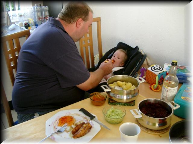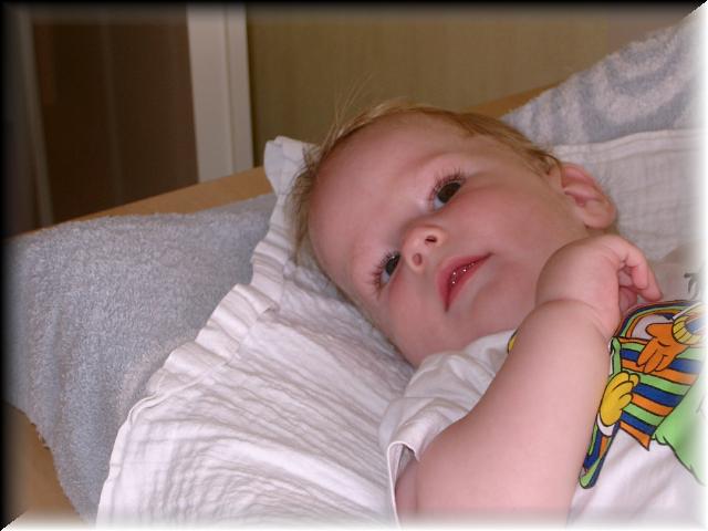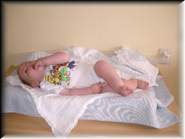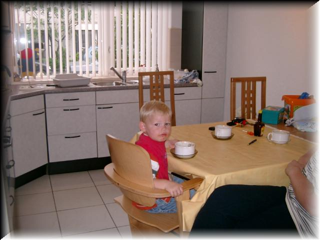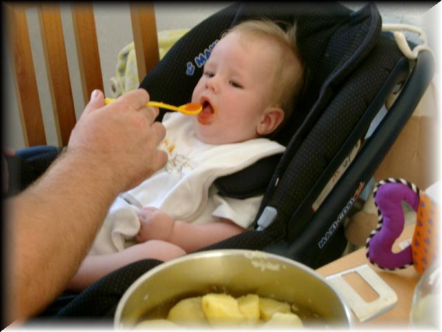 Ook met de fruit- en groentehapjes gaat het steeds beter. Een half potje eet Danny zo achterelkaar op. Hij heeft wel even de tijd nodig maar dat geeft niks. Soms zou hij zelfs een heel potje lusten. De fles drinken gaat ook nog steeds heel goed, alleen als het 's avonds wat later is geworden heeft Danny vaak geen trek en fut meer en wil hij het liefst lekker slapen. Daarom zijn we vandaag, 27 augustus, begonnen met in de eerste 3 flessen 250 ml per fles te doen en de laatste fles gaan we dan langzaam afbouwen. Danny moet dan wel netjes zijn prakkie blijven eten. Nu geven we 's avonds, na de groentehap, nog ongeveer 100 ml melk. Daarna kan Danny lekker naar bed.