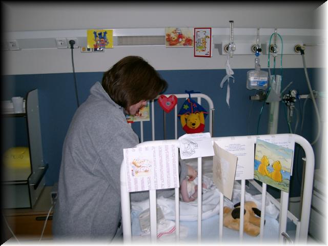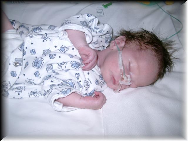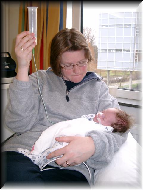 Danny is vandaag weer veel en goed wakker geweest. We hebben nog een paar leuke foto's van Danny gemaakt met zijn ogen open (het lijkt erop dat hij blauwe ogen krijgt). Hij krijgt nog wel een beetje hulp met ademhalen, zijn zuurstofgehalte zakt nog te vaak, soms wel tot 88%. Op zich is dat niet zo erg want hij komt zelf binnen een korte tijd weer goed op 100% terug. Tot nu toe kreeg hij zuurstof toegediend. Nu is het alleen nog maar 'gewone lucht' wat ze in zijn neusje blazen. We hopen dat dat ook snel niet meer nodig is.