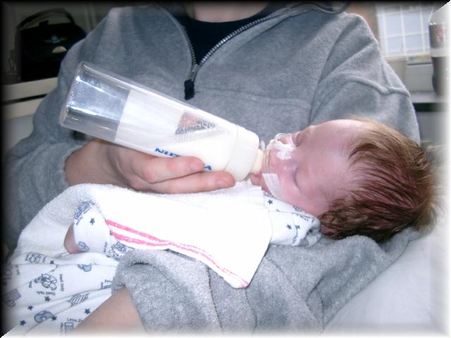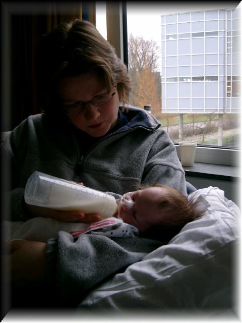 Het gaat erop lijken dat Danny zijn flesje drinken goed doorzet. Hij heeft vandaag weer twee keer zijn flesje helemaal opgedronken. Een flesje 55 ml en een flesje met maar 10 ml. Dat is jammer, maar we zien toch een stijgende lijn. Nog even volhouden zo en dan kan misschien de sonde er wel uit.