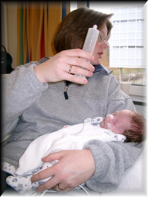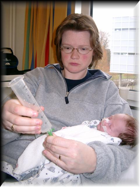 Wij hebben vandaag wel weer zelf de sonde voeding gegeven. Nog een paar keer oefenen en dan kunnen we dat zelf, met alle vertrouwen, ook thuis doen.
