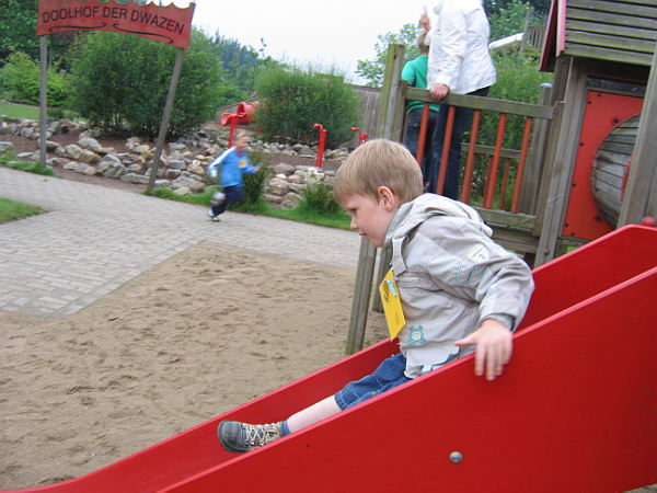 Gelukkig ging het allemaal erg goed, zelfs beter dan dat ik verwacht had. Danny is samen met de kinderen met de bus daar naartoe gegaan. Ik ben er met de auto achteraan gereden. Op die manier, zo hadden we afgesproken, konden Danny en ik doen wat wij wilden in het geval Danny het misschien toch niet de hele dag zou volhouden. Het is een super gezellig dag geworden waar Danny zich heel goed heeft gedragen. Ik denk achteraf dat het ook niet echt nodig was geweest dat ik mee ben gegaan. Het is wel zo dat Danny extra in de gaten gehouden moet worden omdat hij eerder dan andere kinderen zouden doen naar een andere attractie zou rennen. Danny heeft alles lekker gezellig mee kunnen doen. Het was wel zo dat hij weinig samen met de andere kinderen speelde. Alleen als de andere kinderen op dezelfde glijbaan speelde als Danny dan speelde hij samen. Het was dus niet zo dat hij de kinderen opzocht om met hun te gaan samenspelen. Danny heeft het heel erg naar zijn zin gehad. Zelfs de hoogste glijbaan was voor Danny geen probleem, gewoon de trap op, de glijbaan af en rennend weer naar de trap terug. Zelfs de touwbrug kon Danny goed over lopen. Ik denk dat de juffen die hem hebben zich spelen ook wel verbaasd waren wat hij allemaal kan. Het scheelt bij Danny echt heel veel als hij bekend is met de dingen die hij doet.