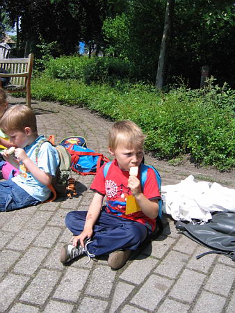 Om 15.30 uur hebben we nog een ijsje gegeten waarna iedereen terug ging naar de bussen. Danny is ook met de bus terug naar school gereden. Achteraf hoorde ik wel dat Danny in de bus in slaap is gevallen.