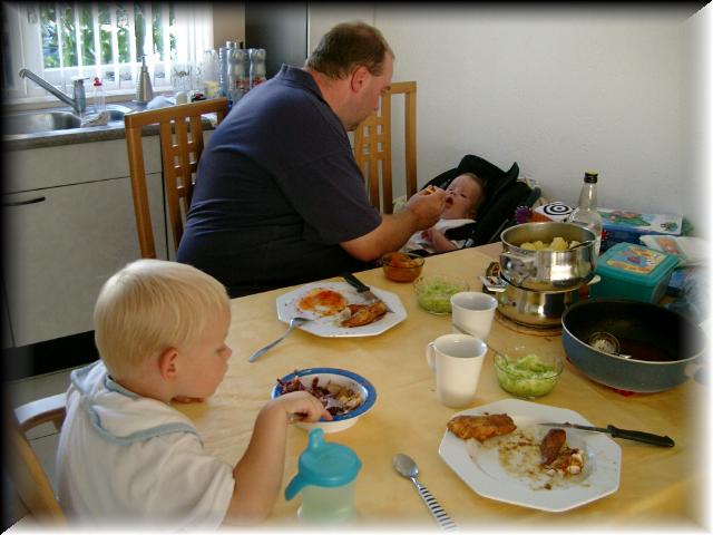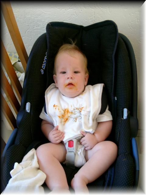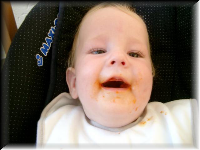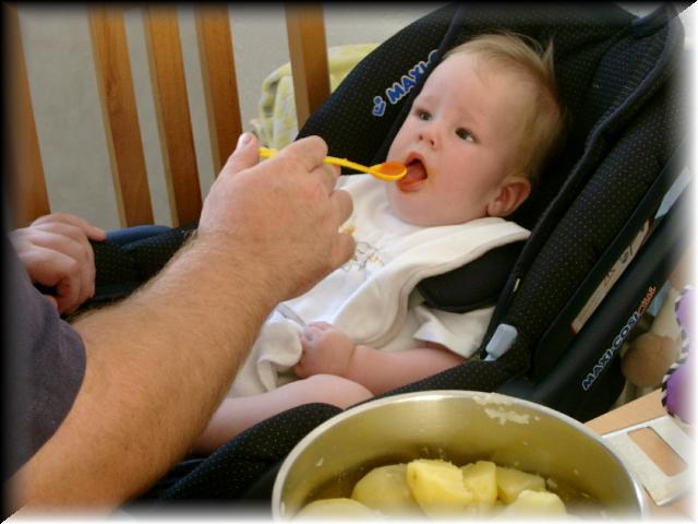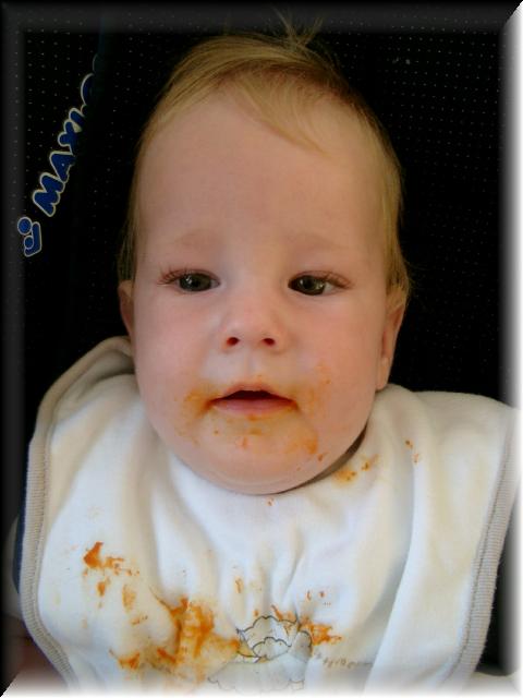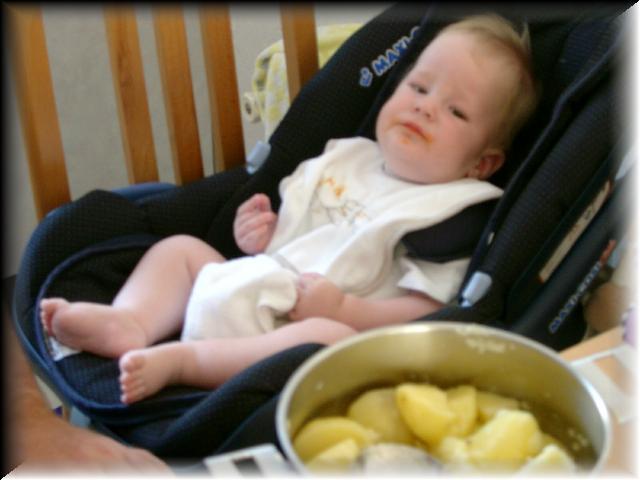 Ook met de fruit- en groentehapjes gaat het steeds beter. Een half potje eet Danny zo achterelkaar op. Hij heeft wel even de tijd nodig maar dat geeft niks. Soms zou hij zelfs een heel potje lusten. De fles drinken gaat ook nog steeds heel goed, alleen als het 's avonds wat later is geworden heeft Danny vaak geen trek en fut meer en wil hij het liefst lekker slapen. Daarom zijn we vandaag, 27 augustus, begonnen met in de eerste 3 flessen 250 ml per fles te doen en de laatste fles gaan we dan langzaam afbouwen. Danny moet dan wel netjes zijn prakkie blijven eten. Nu geven we 's avonds, na de groentehap, nog ongeveer 100 ml melk. Daarna kan Danny lekker naar bed.
