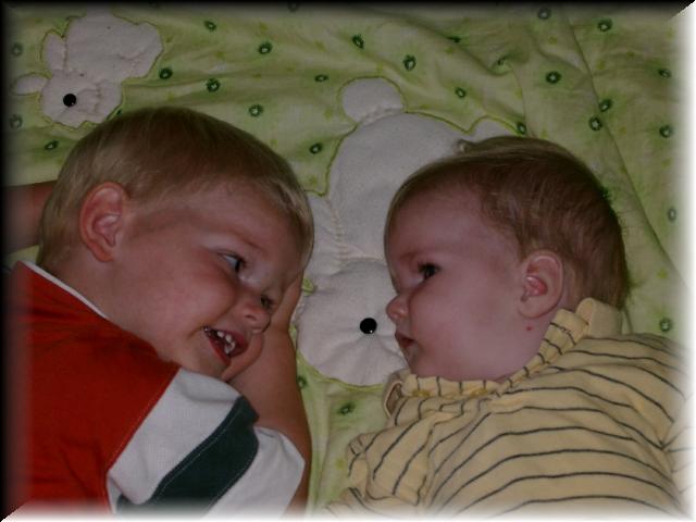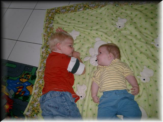 Ook Jordy kan steeds leuker met Danny samen spelen. Op het kleed op de grond of als Danny in het wipstoeltje zit. In het wipstoeltje zitten gaat ook steeds beter en Danny vindt het ook erg leuk want dan kan hij veel meer zien. Gewoon lekker om zich heen kijken of naar tijgertje, de poes, of het aquarium. Jordy is erg lief voor Danny en knuffelt hem de hele dag door. Al zijn speelgoed moet Danny zien en het liefst ook mee spelen en als Jordy weer een poep op de wc gemaakt heeft (hij is namelijk hard zijn best aan het doen om goed zindelijk te worden) dan komt hij dat dolenthousiast aan Danny vertellen.