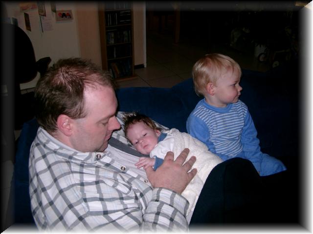Vandaag is Danny zijn achtste week in gegaan. Wat gaat alles toch snel. Danny is nu al weer drie weken thuis. We denken nog steeds dat Danny (heel langzaam) vooruit gaat. Gisteren was Danny 's avonds veel aan het huilen. Als we hem dan optilden was Danny stil en keek hij ons aan. Zodra hij weer terug in de box ging begon hij weer te huilen. Het geeft eerst even de zorgen van wat zou er aan de hand zijn. Aan de andere kant is het weer lekker te weten dat hij als een gezonde baby reageert en dat hij vertrouwd is bij zijn pappa en mamma en weet dat we bij hem zijn en hem aandacht geven.