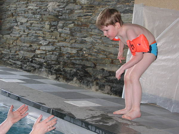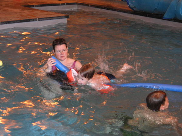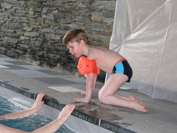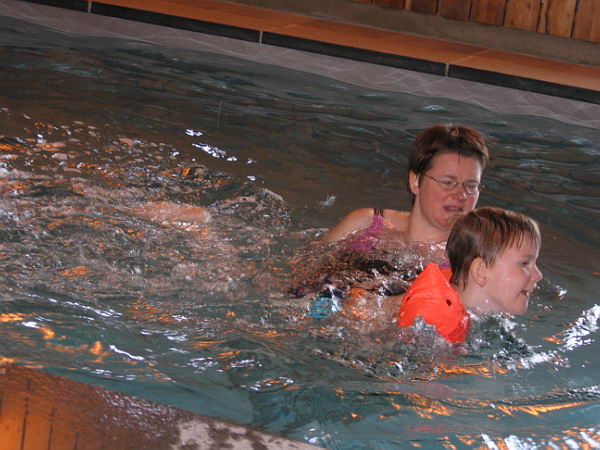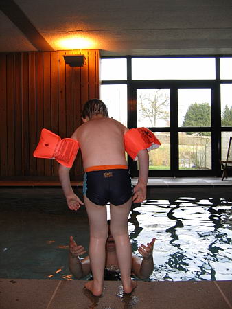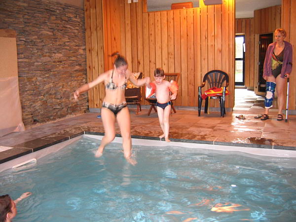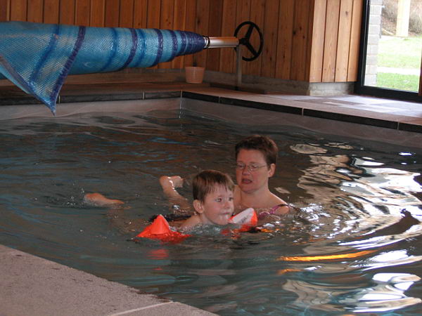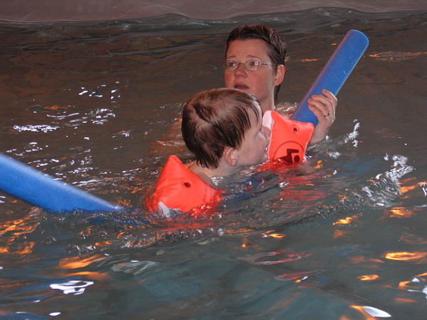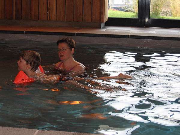 Ook zijn de jongens nog lekker wezen zwemmen in ons eigen zwembad. Daar heeft ook Danny heerlijk van genoten. Lekker in het water springen en zelfs een beetje zwemmen. Hij vond het helemaal leuk.