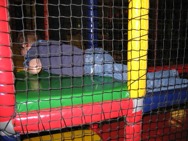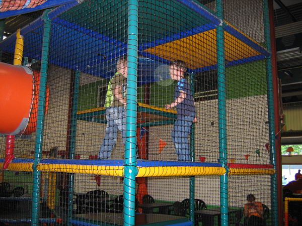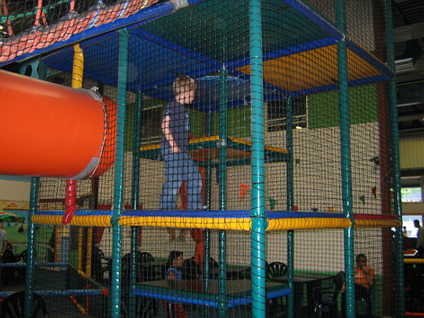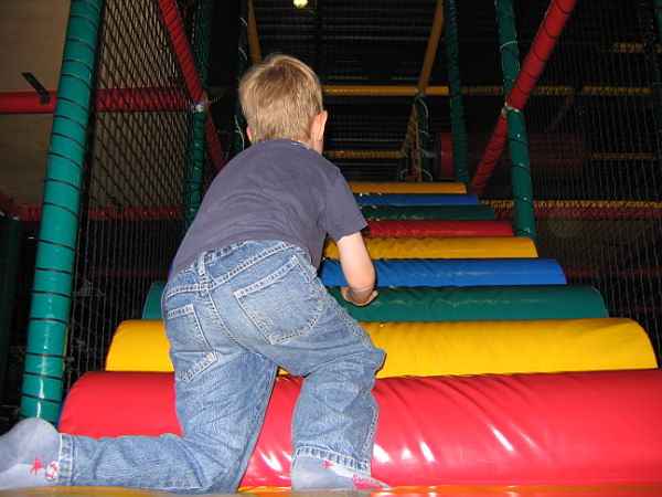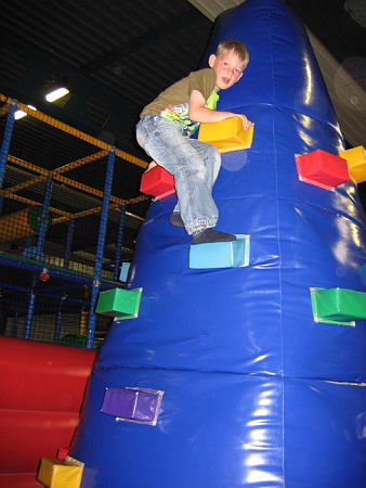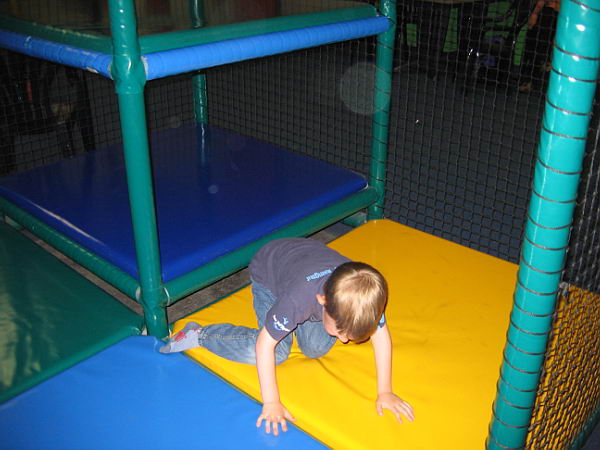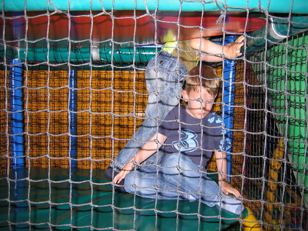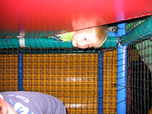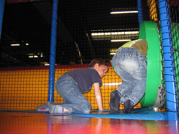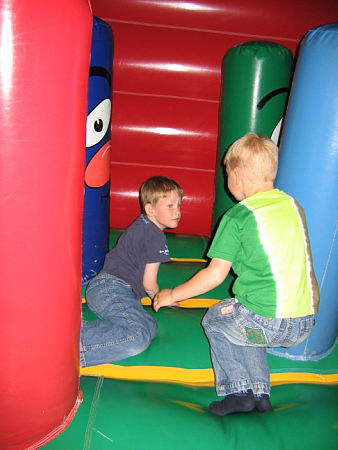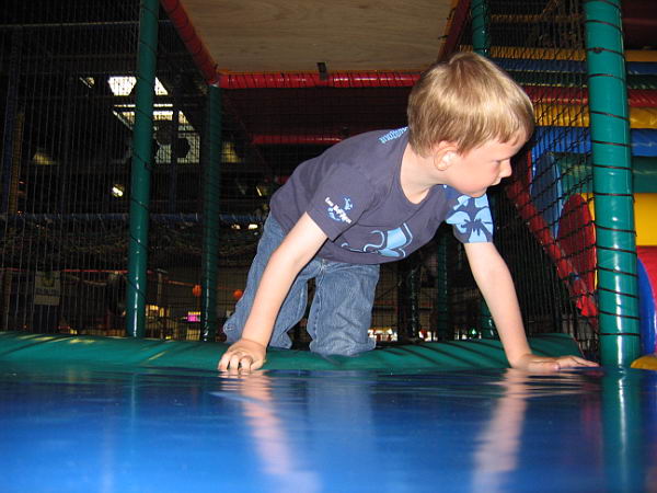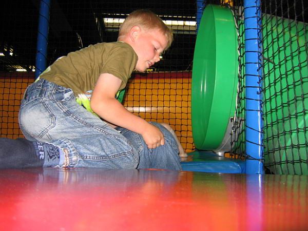 Dat betekende dat ik heerlijk het weekend alleen met de jongens was en samen hebben we leuke dingen gedaan. Zaterdags zijn we naar Balorig geweest. Dat is een soort binnen speeltuin met grote klim- en klauter toestellen. Jordy en Danny hebben het daar super naar hun zin gehad. Jordy heb ik af en toe zien langs rennen, die vermaakte zich perfect. Danny moest wat rustiger aan beginnen. De toestellen waren vrij groot en Danny had niet voldoende kracht om zich overal op omhoog te trekken. Maar na een uurtje en met de aanwijzingen van Jordy hoe het allemaal moest had Danny zijn draai ook gevonden. Bij sommige toestellen gaf Jordy het voorbeeld en kon Danny volgen, bij andere toestellen moest Jordy Danny letterlijk omhoog duwen omdat Danny niet sterk genoeg was om het alleen te doen. Het was wel heel leuk om ze zo samen bezig te zien. Op de terugweg viel Danny (natuurlijk) heerlijk in slaap in de auto. Thuis was hij alweer zo ver uitgerust dat hij lekker verder ging met spelen.