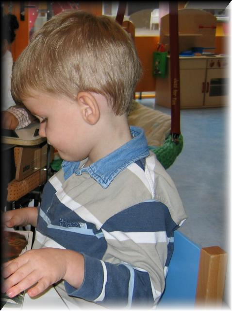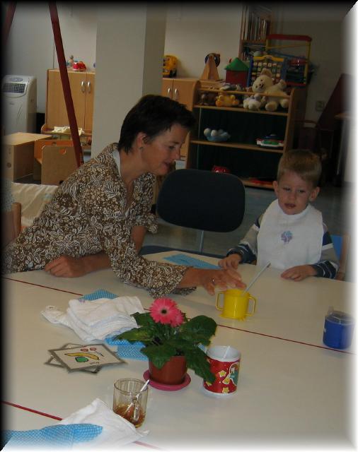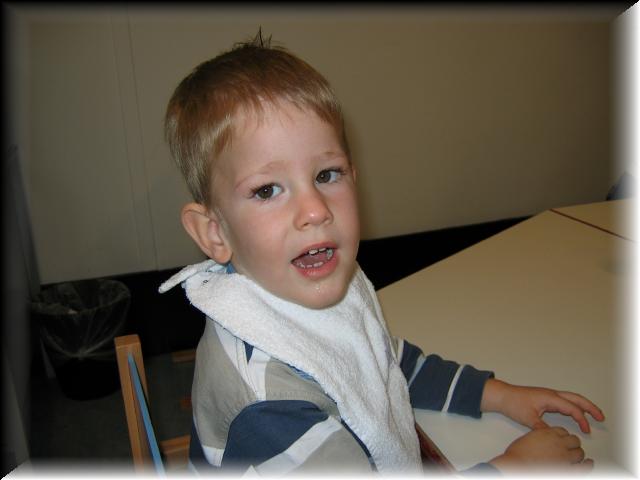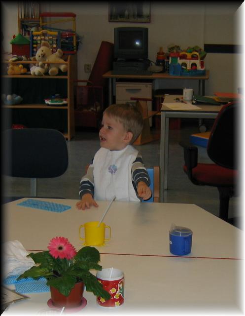 Vandaag is Danny voor het eerst naar het peutergroepje geweest (schooltje noemen wij het voor de duidelijkheid) en jij vond het daar superleuk. Wel even vreemd he toen we vanmorgen met de taxi erheen gebracht werden. Gezellig met de andere kindjes heb je limonade gedronken en een appel gegeten en daarna lekker gespeeld.