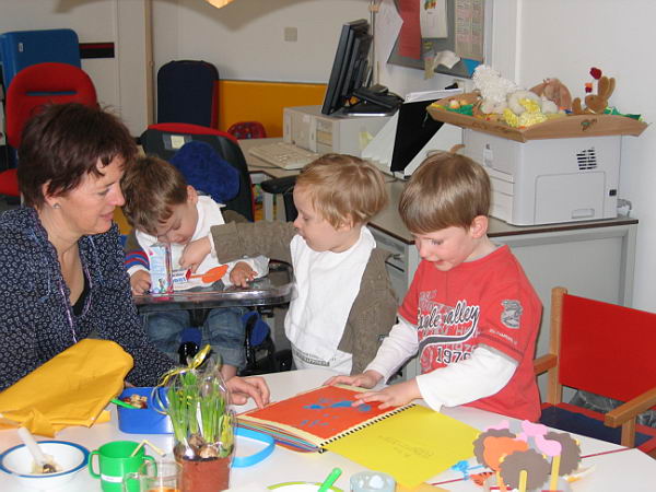 Danny vond het allemaal erg leuk. Hij wist precies dat we voor de laatste keer naar Rijndam en de peuterspeelzaal gingen. Danny mocht ook nu weer uitdelen. Op de peuterspeelzaal heeft Danny een kleuterbewijs en een mooie kaart gekregen. Op Rijndam hadden de juffen van al zijn knutsels en foto's een boekwerk gemaakt. Er stonden ook foto's in van de juffen, de therapeuten en de kinderen van Danny's groep. Een heel leuk aandenken.