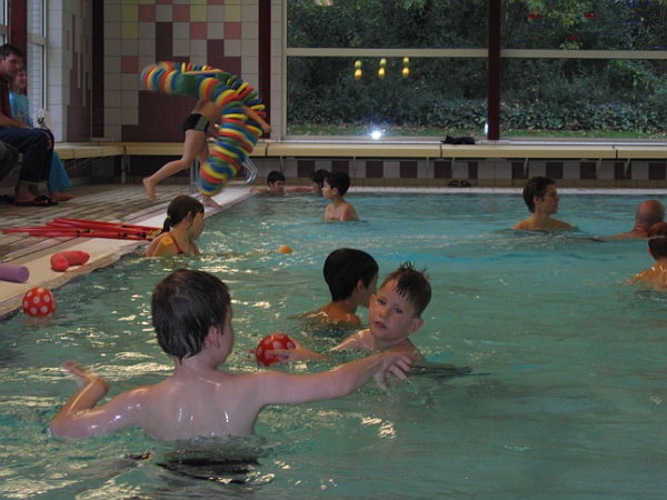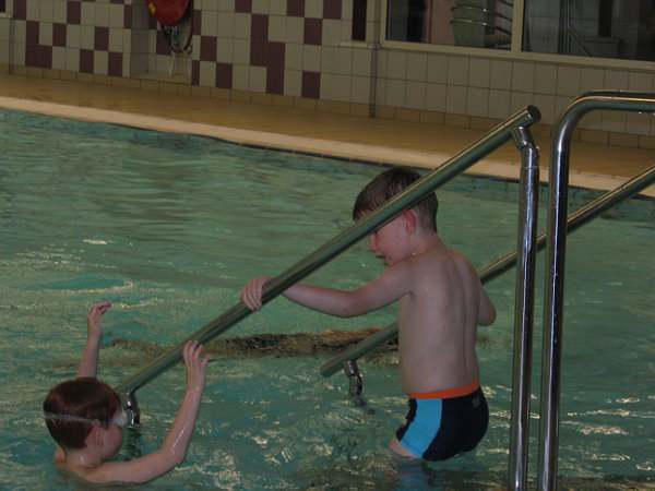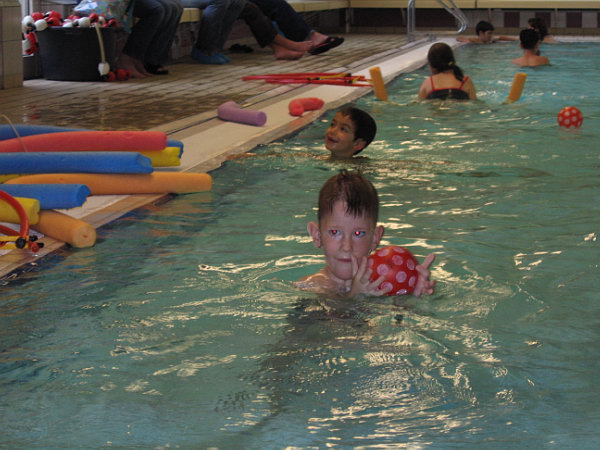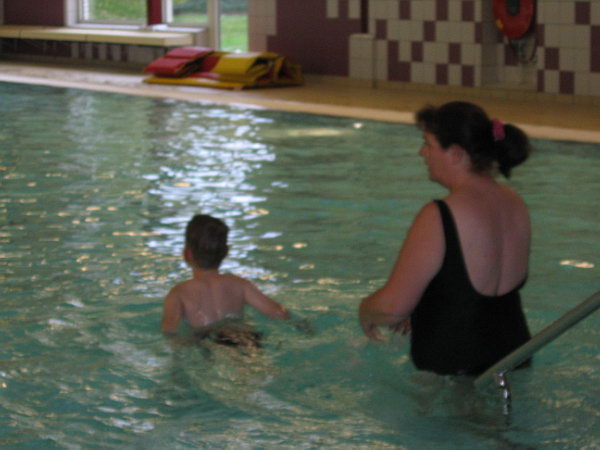 Deze week is Danny voor het eerst naar zwemles geweest. In Spijkenisse bestaat een zwemvereniging Boboz die zwemles biedt aan kinderen met een beperking. We waren daar al een keer wezen kijken en het zag er heel leuk en goed uit. Het is eigenlijk een normale zwemles in kleine groepjes. Er wordt veel meer gekeken naar wat de kinderen aan kunnen en het is niet zo prestatiegericht als de normale zwemles.