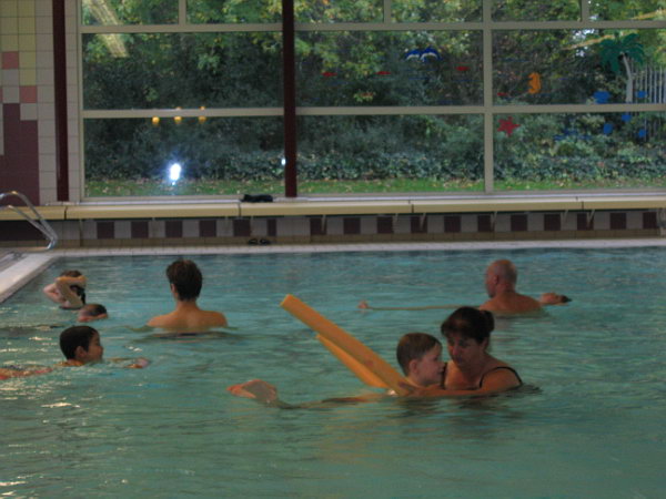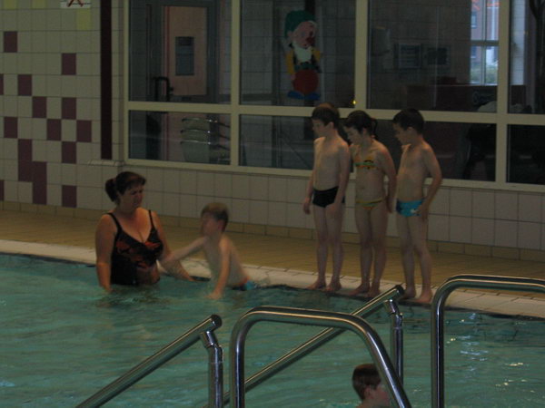 We hebben nog even kunnen na praten met de zwemjuf. Ze vond dat Danny wel in het eerste bad moest starten omdat hij nog niet goed kon drijven en de borstcrawl beweging met zijn armen niet kon. Ook de evenwichtoefening moet hij beter doen. We waren het helemaal met de zwemjuf eens. Het is alleen erg jammer dat er een erg lange wachtlijst is. Zoals we het nu hebben begrepen is er een wachtlijst van ongeveer 9 maanden, dat is wel erg jammer.